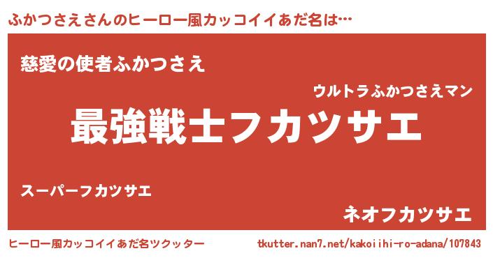 | 意味不明あだ名 | 『自称ふかつさえ』『永久保存ふかつさえ』 |