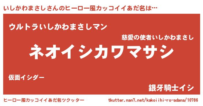 | 男性向けラノベタイトル風あだ名 | 『誰もが恐れるあのいしかわまさしが、ぼくの専属メイドになるようです。』 |