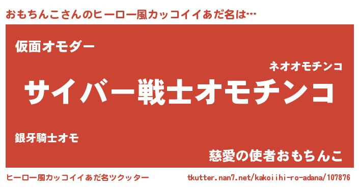 | 男性向けラノベタイトル風あだ名 | 『Re:おもちんこから始める異世界生活』 |