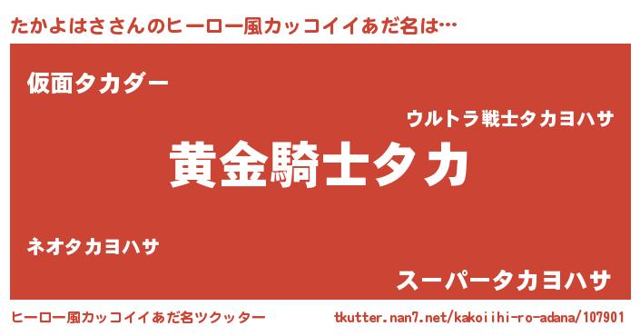 | ポケモン風あだ名 | 『ヒタカヨハサ』『ターカイ』 |