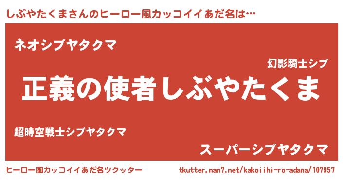 | 男性向けラノベタイトル風あだ名 | 『おまえをオタクにしてやるから、俺をしぶやたくまにしてくれ! 』 |