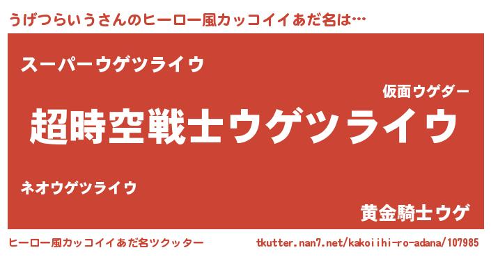 | 恥ずかしいあだ名 | 『ウゲツライウデラックス』『うげちん』 |
