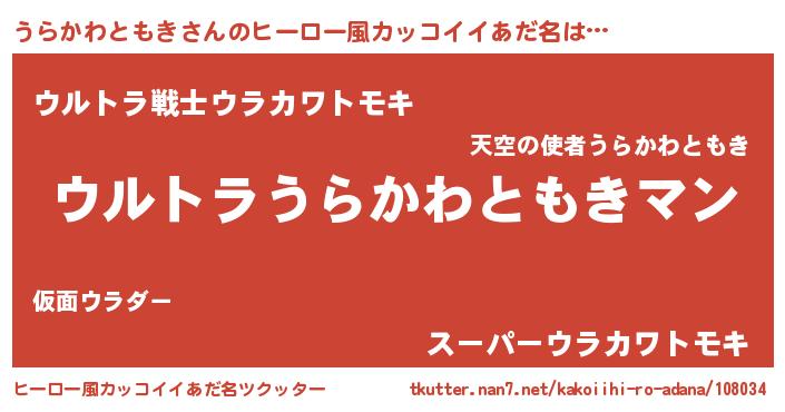 | 男性向けラノベタイトル風あだ名 | 『やはりうらかわともきの青春ラブコメはまちがっている 』 |