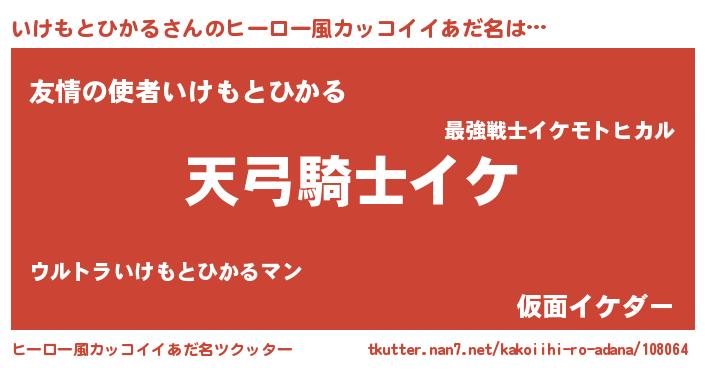 | 男性向けラノベタイトル風あだ名 | 『いけもとひかるの嫁は女の子じゃないと思った?』 |