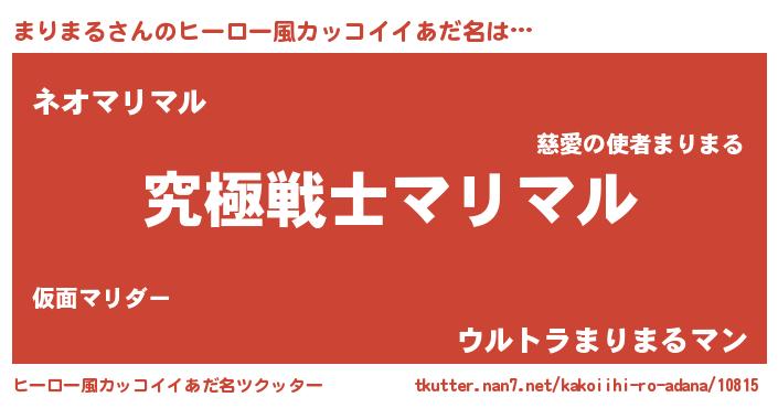| 男性向けラノベタイトル風あだ名 | 『まりまる~年齢イコール彼女いない歴の魔法使い~』 |