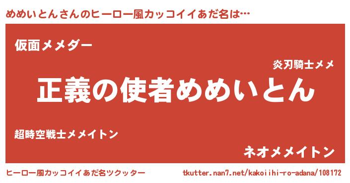 | 男性向けラノベタイトル風あだ名 | 『メメイトンスレイヤー』 |