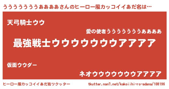 | 男性向けラノベタイトル風あだ名 | 『Re:うううううううああああから始める異世界生活』 |