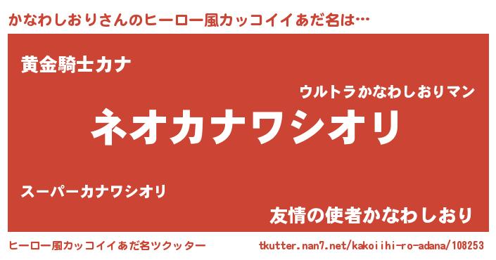 | 男性向けラノベタイトル風あだ名 | 『緋弾のカナワシオリ』 |