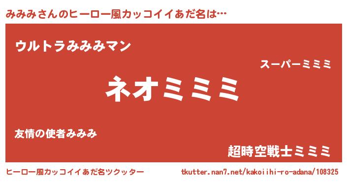 | 男性向けラノベタイトル風あだ名 | 『みみみという概念が存在しない退屈な世界 』 |