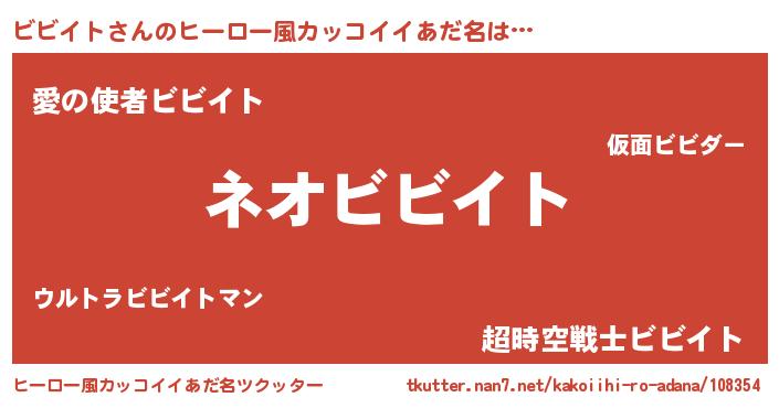 | 男性向けラノベタイトル風あだ名 | 『ビビイト~年齢イコール彼女いない歴の魔法使い~』 |