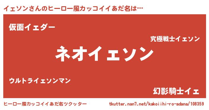 | ヘコむあだ名 | 『イェソン(笑)』『イェ太郎』『牛乳』 |