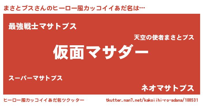 | 男性向けラノベタイトル風あだ名 | 『この素晴らしい世界にまさとブスを!』 |