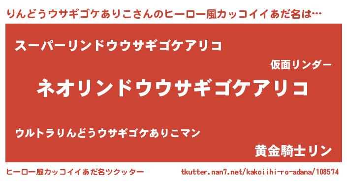 | 女子向けラノベタイトル風あだ名 | 『異世界で失敗しない100のりんどうウサギゴケありこ』 |