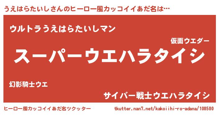 | 胡散臭い通販商品みたいなあだ名 | 『億万長者になれる霊験あらたかなお札…その名も「うえはらたいし」』 |