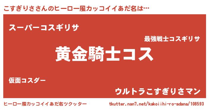 | ポケモン風あだ名 | 『コスゴンZ』『ヒコスギリサ』 |