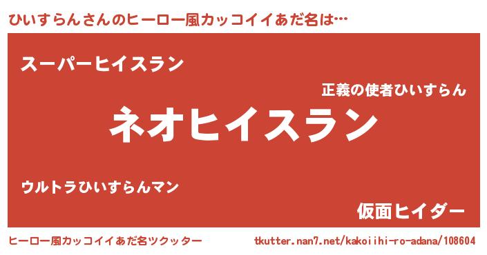| ヘコむあだ名 | 『ひいすらん(苦笑)』『ひいにゅー』 |