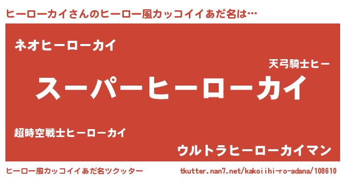 | 胡散臭い通販商品みたいなあだ名 | 『モテモテ間違いなしブレスレット…その名も「ヒーローカイ」』 |