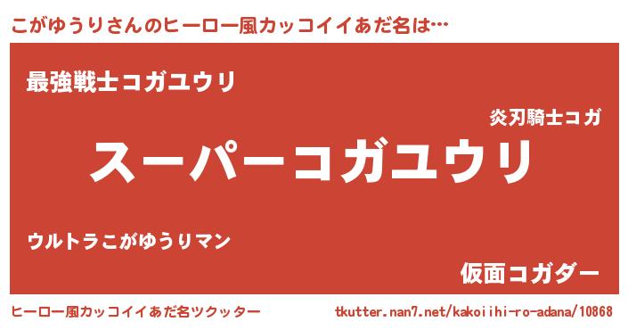 | 胡散臭い通販商品みたいなあだ名 | 『億万長者になれるブレスレット…その名も「こがゆうり」』 |