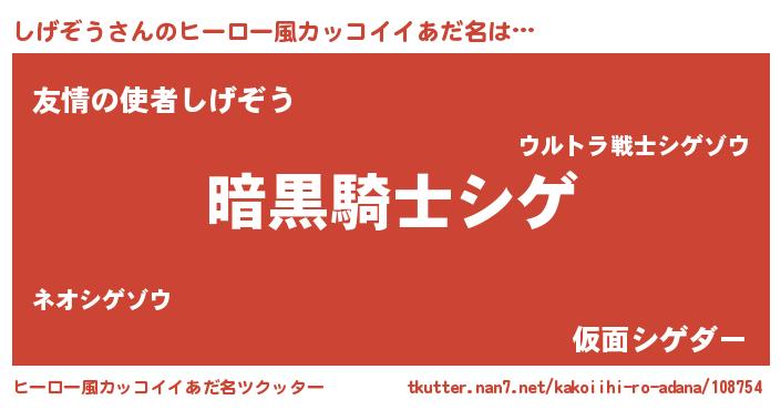 | 男性向けラノベタイトル風あだ名 | 『シゲゾウスレイヤー』 |
