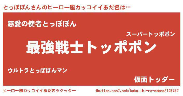 | 男性向けラノベタイトル風あだ名 | 『とっぽぽんに滅ぼされるだけの簡単なお仕事です』 |