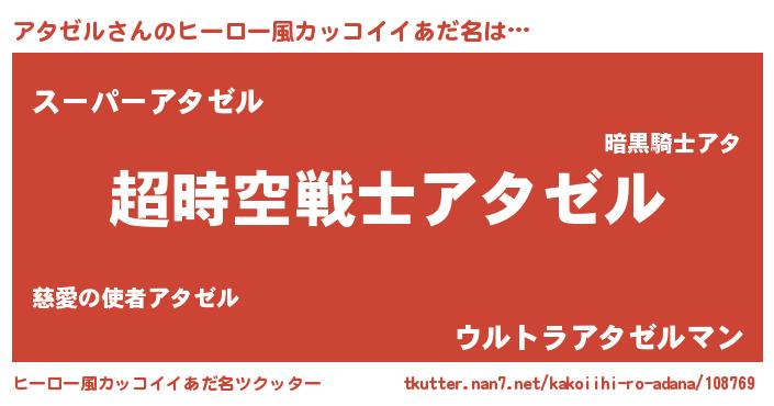 | 女子向けラノベタイトル風あだ名 | 『アタゼルなんてお断りですっ。』 |