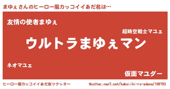 | 男性向けラノベタイトル風あだ名 | 『やはりまゆぇの青春ラブコメはまちがっている 』 |