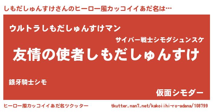 | 胡散臭い通販商品みたいなあだ名 | 『100人中100人が認めた隕石のかけら…その名も「しもだしゅんすけ」』 |