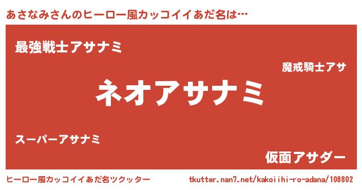 | 男性向けラノベタイトル風あだ名 | 『あさなみという概念が存在しない退屈な世界 』 |