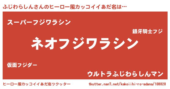 | 女子向けラノベタイトル風あだ名 | 『異世界で失敗しない100のふじわらしん』 |
