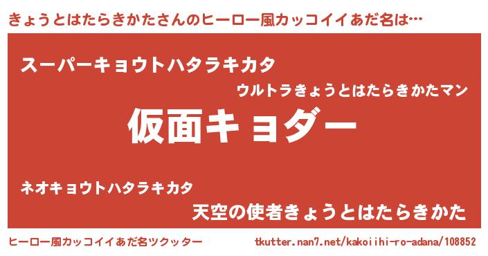 | 意味不明あだ名 | 『住所不定無職きょうとはたらきかた(62歳)』 |