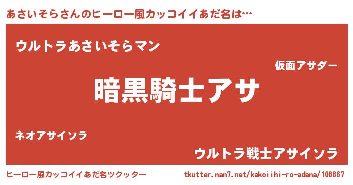 | 胡散臭い通販商品みたいなあだ名 | 『信頼と実績のサプリメント…その名も「あさいそら」』 |