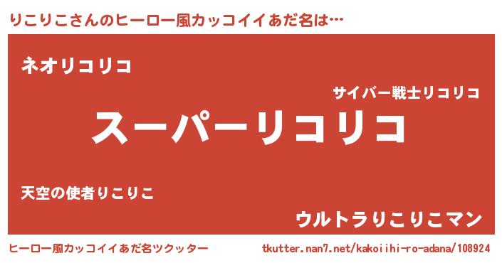 りこりこさんのヒーロー風カッコイイあだ名をツクッター!
