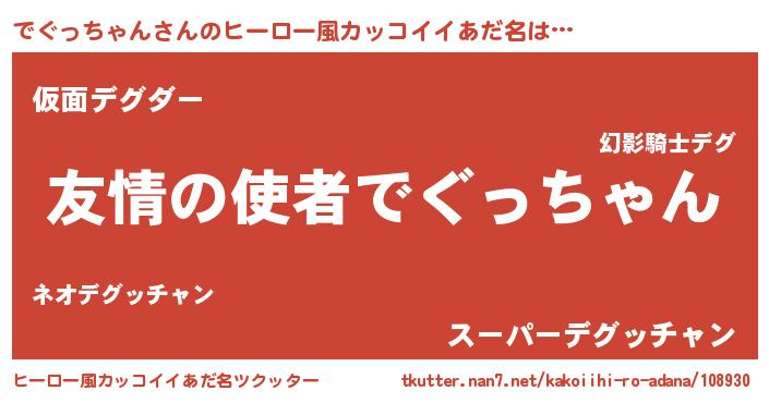 | 男性向けラノベタイトル風あだ名 | 『デグッチャンスレイヤー』 |