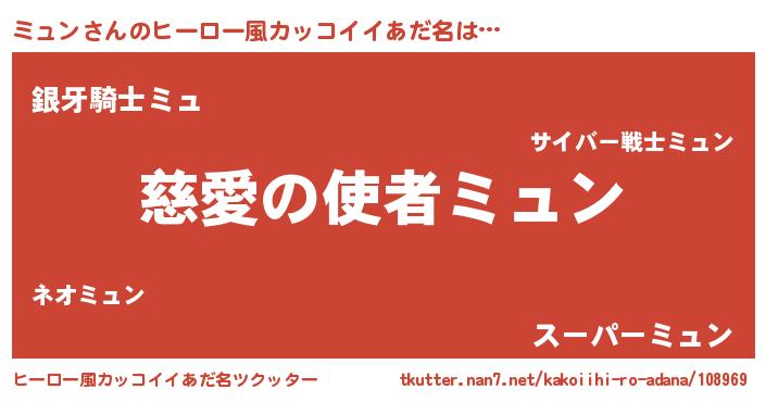 ミュンさんのヒーロー風カッコイイあだ名をツクッター!