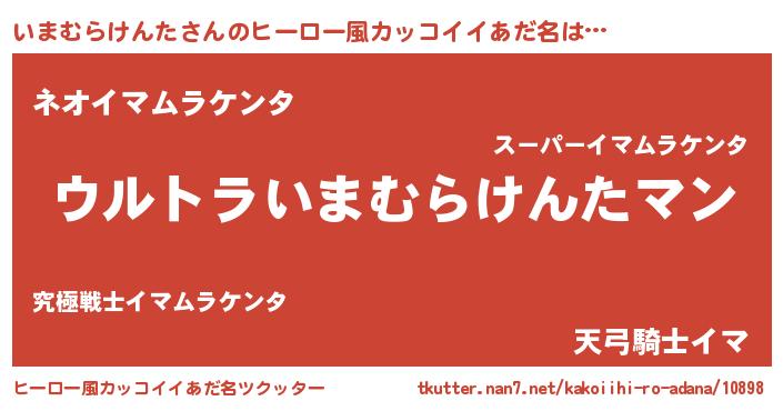 | 男性向けラノベタイトル風あだ名 | 『やはりいまむらけんたの青春ラブコメはまちがっている 』 |