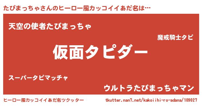 | 男性向けラノベタイトル風あだ名 | 『魔弾の王とたぴまっちゃ』 |