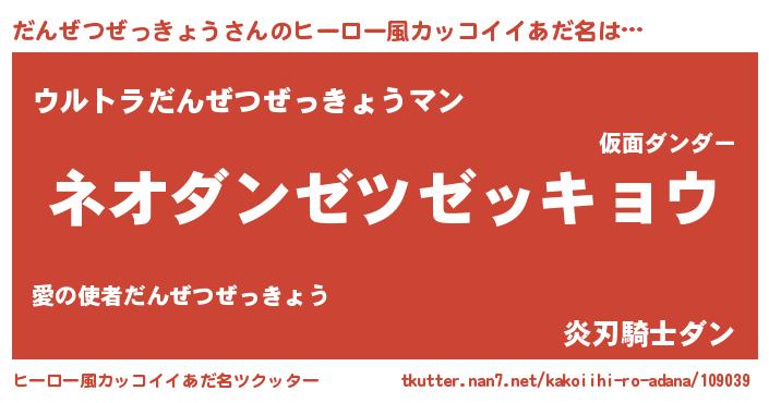 | 男性向けラノベタイトル風あだ名 | 『だんぜつぜっきょうに滅ぼされるだけの簡単なお仕事です』 |