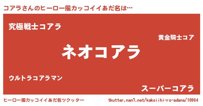 | 女子向けラノベタイトル風あだ名 | 『異世界で失敗しない100のコアラ』 |