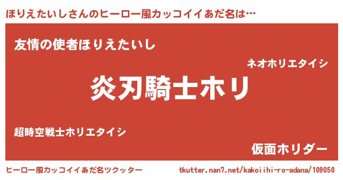 | 男性向けラノベタイトル風あだ名 | 『ほりえたいしの嫁は女の子じゃないと思った?』 |