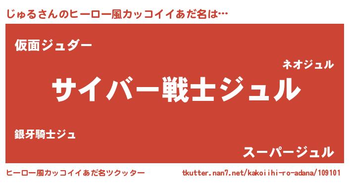 | 男性向けラノベタイトル風あだ名 | 『転生したらじゅるだった件』 |