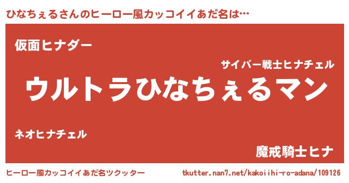 | ファンタジー風あだ名 | 『エターナルヒナチェルー』『ゼヒナトゥ』 |