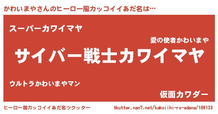 | 男性向けラノベタイトル風あだ名 | 『かわいまやに滅ぼされるだけの簡単なお仕事です』 |