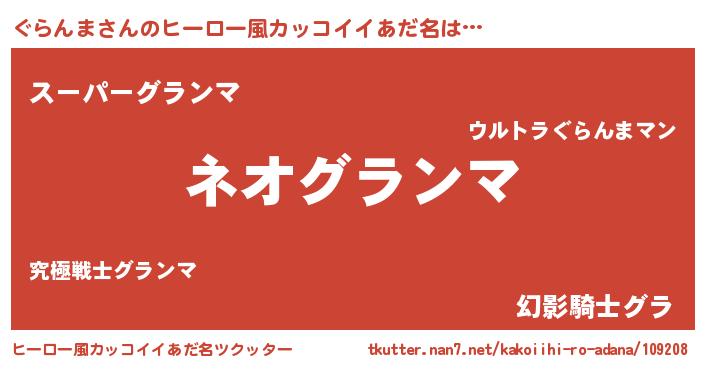 | 男性向けラノベタイトル風あだ名 | 『ぐらんまという概念が存在しない退屈な世界 』 |