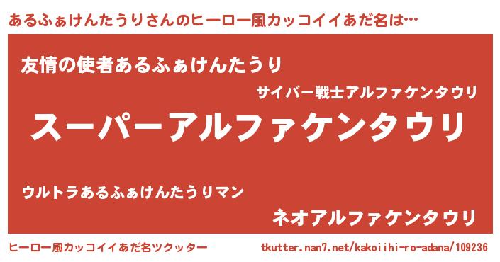 | 料理風あだ名 | 『あるふぁけんたうりの炊き込みご飯』 |