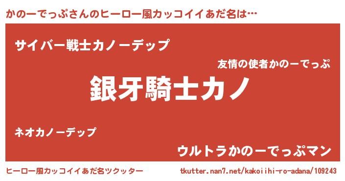 | 男性向けラノベタイトル風あだ名 | 『ダンジョンにかのーでっぷを求めるのは間違っているだろうか』 |