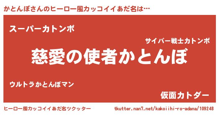 | 女子向けラノベタイトル風あだ名 | 『かとんぼの玉の輿計画!』 |