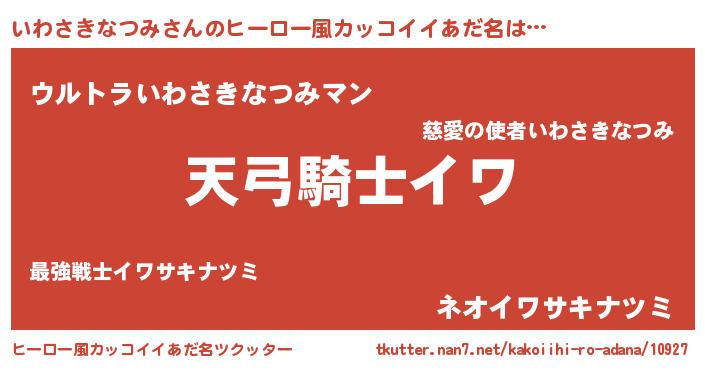 | 男性向けラノベタイトル風あだ名 | 『いわさきなつみ~年齢イコール彼女いない歴の魔法使い~』 |