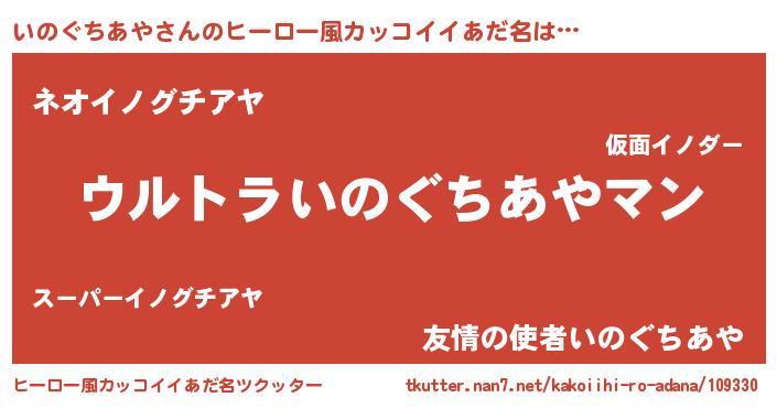 | 男性向けラノベタイトル風あだ名 | 『転生したらいのぐちあやだった件』 |