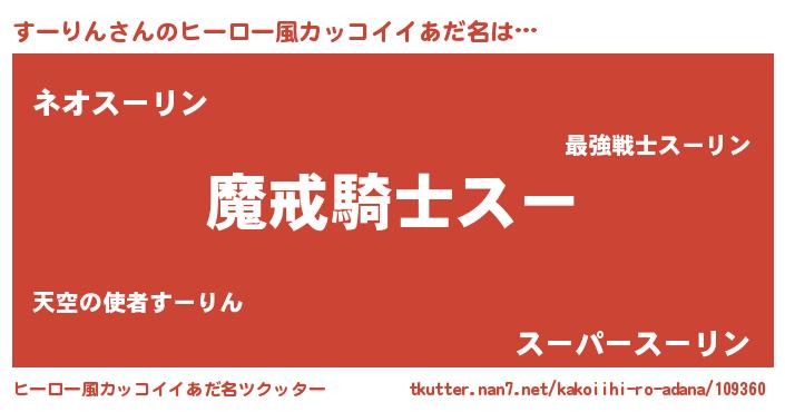 すーりんさんのヒーロー風カッコイイあだ名をツクッター!