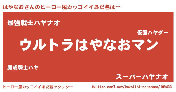 | 女子向けラノベタイトル風あだ名 | 『はやなおの雑貨屋さん』『闇のはやなお』 |